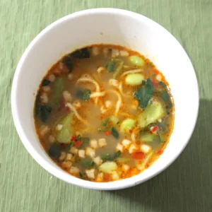 ヤマダイのヴィーガンヌードル(担担麺)は、カップ麺タイプの植物性食品です。めんには小麦粉と大豆食物繊維を使用し、スープはごまをベースに豆板醤や香辛料、酵母エキス、しいたけエキスなどを組み合わせ、コクのある味わいに仕上げています。かやくには粒状大豆たん白、チンゲンサイ、エダマメ、ごまを加え、彩りと食感を添えています。普段の食事や軽めのランチなど、お湯を注ぐだけで手軽に調理できる点も魅力です。パッケージ表示および公式情報では、動物性原材料を使用していないとされており、ベジタリアンやヴィーガンの方も日常の食事に取り入れやすい商品です。
